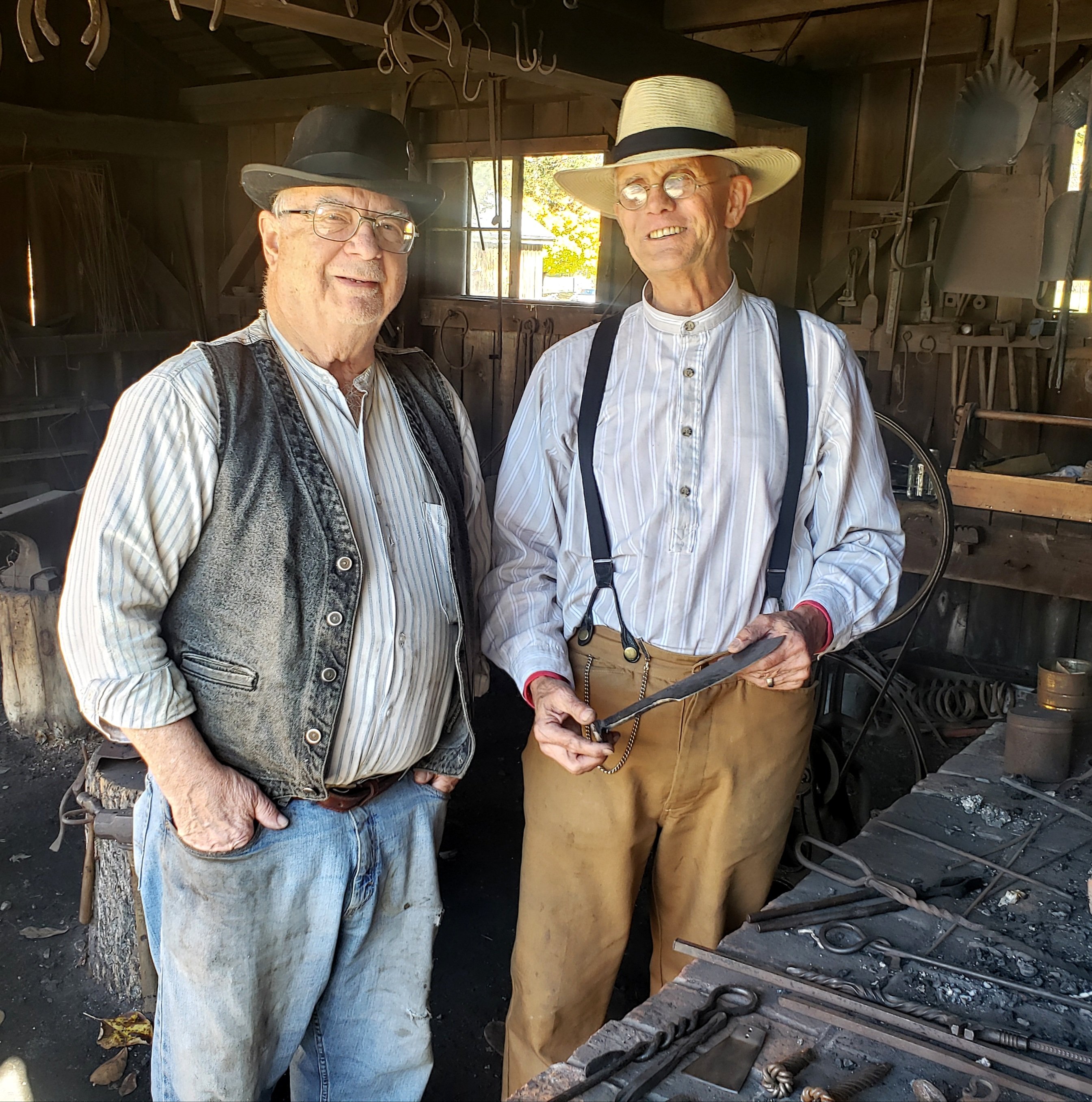 Blacksmith volunteers Charles Sigler and Fiene demonstrate 19th century