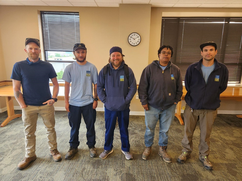 Left to Right: Michael Cooper (Trail Manager), River Spicer (Trail Technician), Noah Browning (Trail Technician), Brittany Belcher (Trail Technician), and Connor Perry (Trail Technician) Staff Highlight: Meet our Dedicated Trail Team - Stewards of Nature and Volunteer Engagement