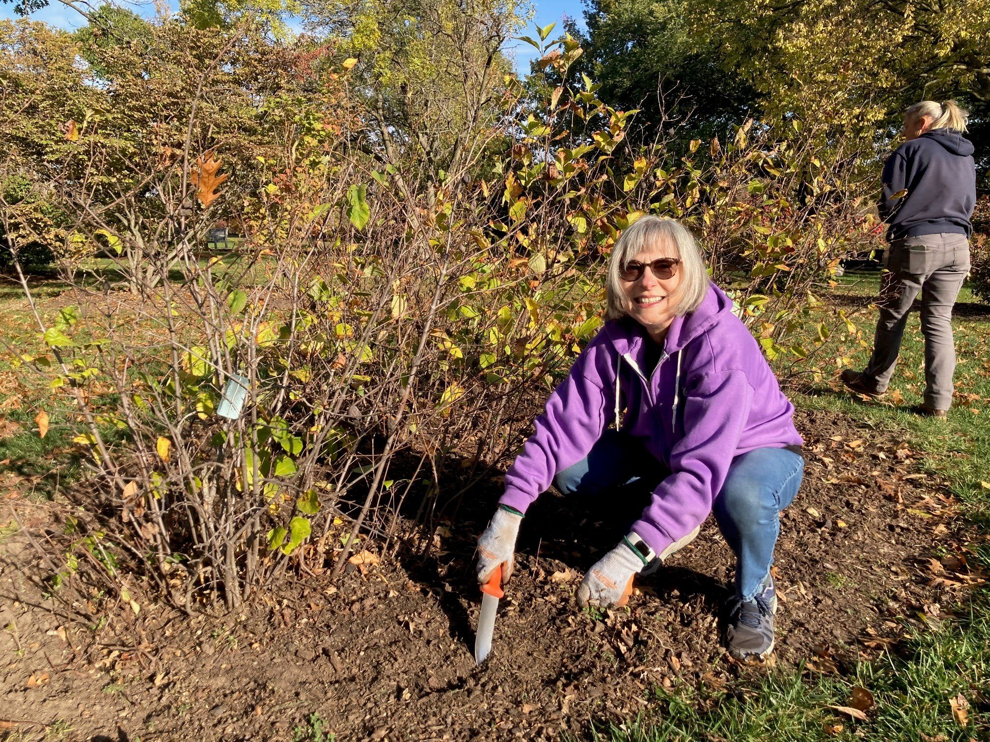 Gardening volunteers support our horticulture and education staff in caring for a variety of gardens throughout our parks. These gardens not only provide beautiful spaces for Miami Valley residents to get outside, explore, and connect to nature, but many also provide fresh local produce to those in need in our community.  Gardening is an all-year activity, and volunteer Judy Knight added some layers and helped staff with fall tasks.
