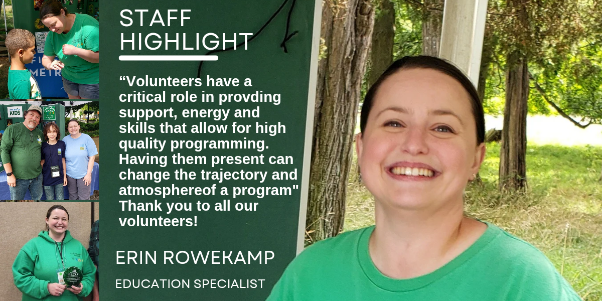 Staff Lead Highlight: Erin Rowekamp, Education Specialist - Connecting People to Nature and Developing Tomorrow's Conservation Leaders At MetroParks, we are fortunate to have incredible staff who work with the public and our volunteers! Each month, we introduce you to some of these amazing individuals. This month, we are highlighting a staff member many may not know, Erin Rowekamp. Erin's primary responsibility is for implementing most of our youth programming across our park district and primarily works with our Conservation Leaders family volunteers. She began her journey as an apprentice with Outdoor Education 6 1/2 years ago. Erin shared, "My time in that position solidified for me that environmental education and connecting people with nature were something that I was deeply passionate about and confirmed that this was the work that I wanted to dedicate my career to. I am now an Education Specialist with Outdoor Education."