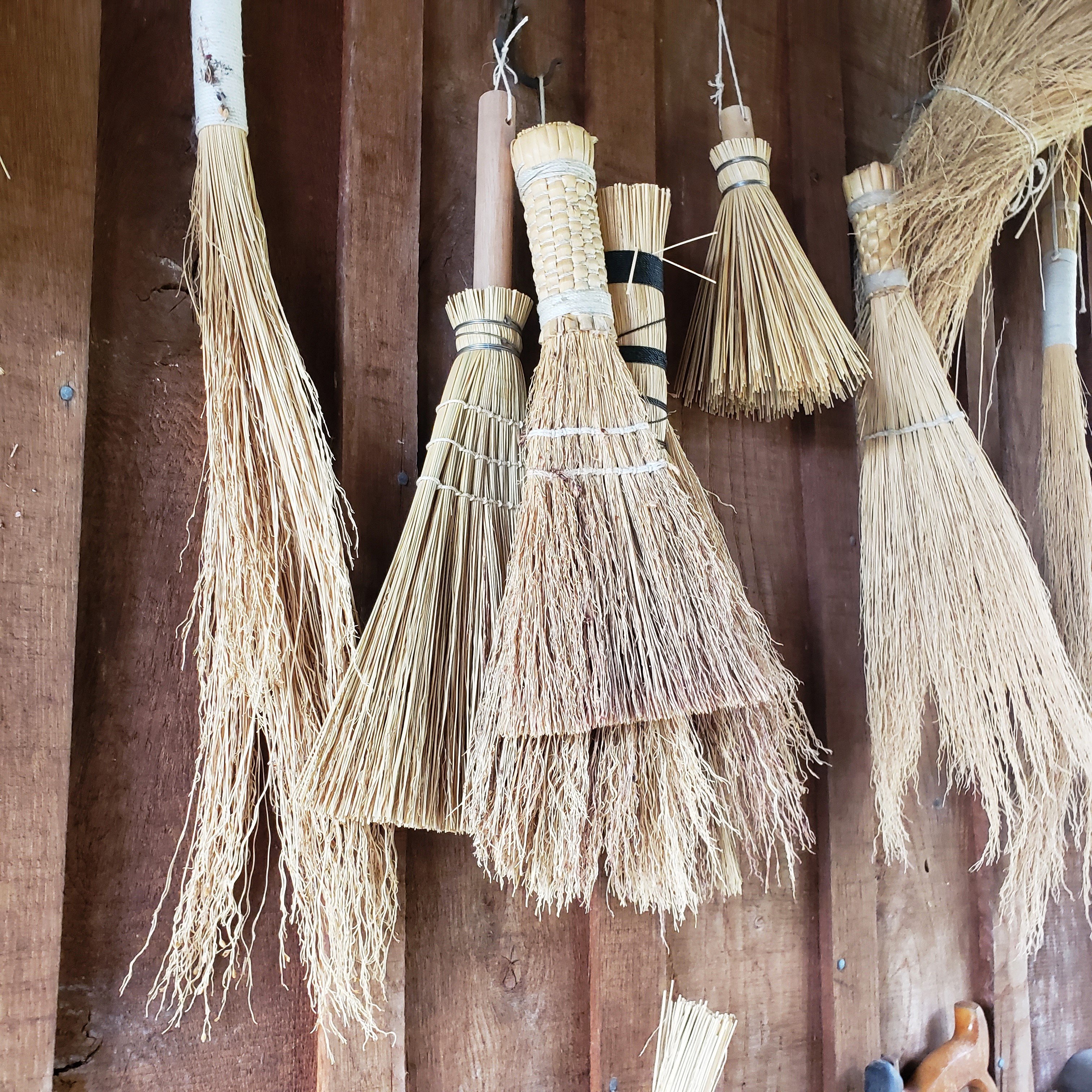 There is no more universal domestic tool in the world than a broom. Many people consider non-native broomcorn (Sorghum spp.) to be the best fiber for making the "head" or "sweep" of a broom. Brooms reflect the historical art forms of binding, weaving, and stitching. They have been essential domestic tools and were a staple in early American homes. Broom-making also served as a lucrative part-time business for farmers and laborers. At the Historic Farm, it is a wonderful demonstration and practical product for use at the farm.