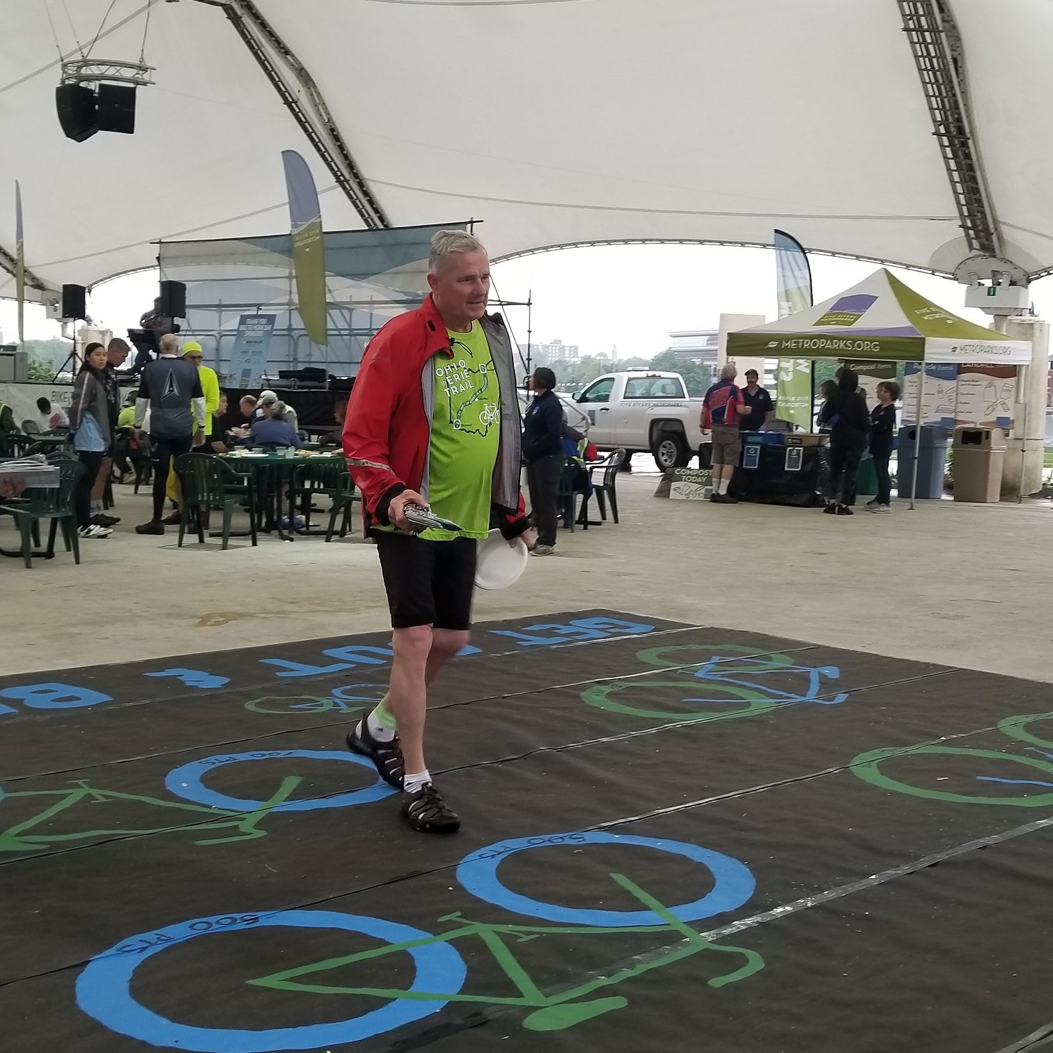 Greet guests and welcome them to Riverscape and Bike to Work Day.