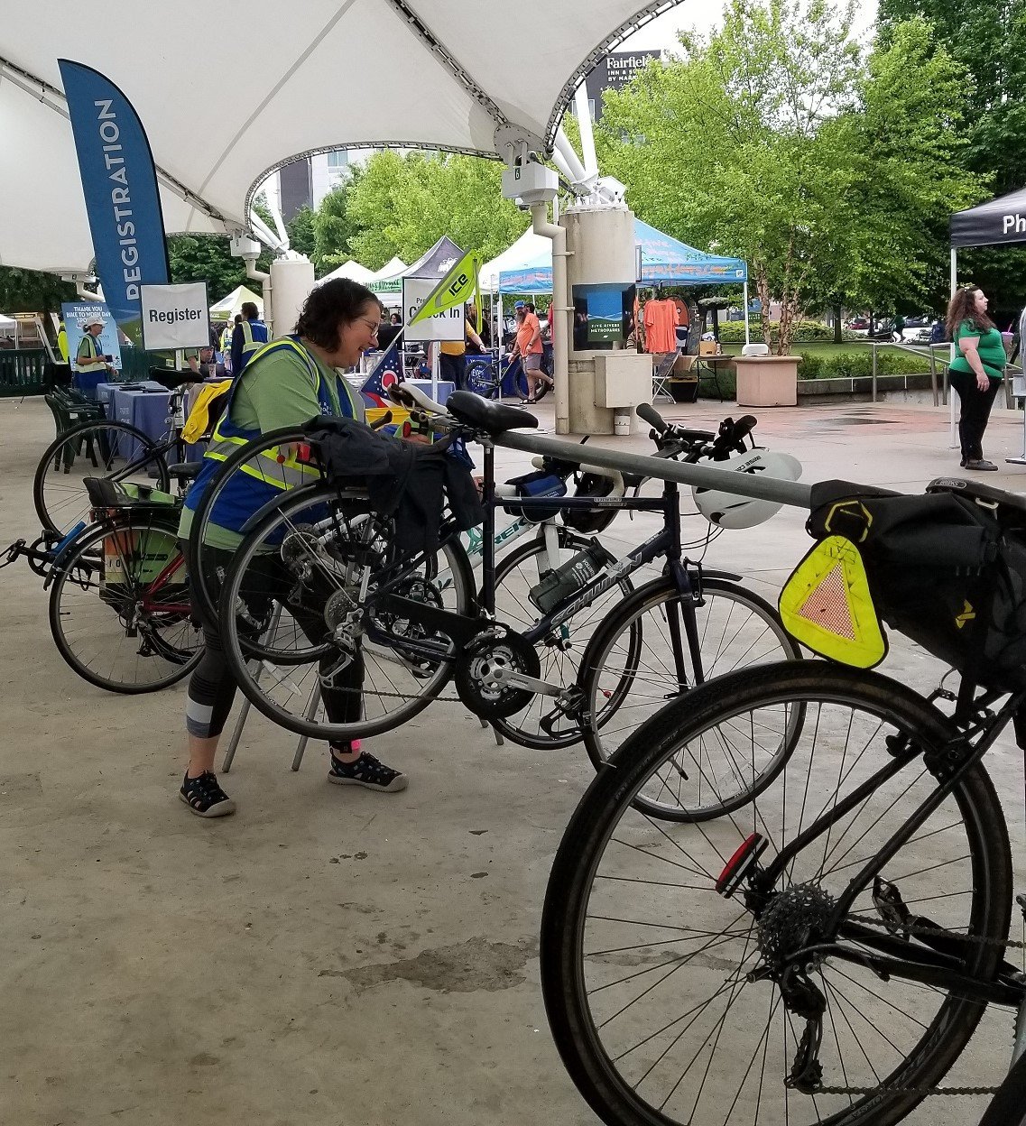 Greet guests and welcome them to Riverscape and Bike to Work Day